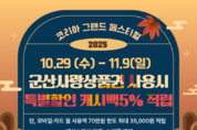 군산시가 정부가 추진하는 대규모 소비진작 프로젝트에 참여해 시민들에게 특별한 경제 혜택을 제공한다. 군산시(시장 강임준)는 오는 29일부터 11월 9일까지 12일간 진행되는 ‘코리아 그랜드 페스티벌’에 참여해, 군산사랑상품권 사용자에게 기존 13% 할인에 추가 5% 캐시백 적립 혜택을 제공한다고 27일 밝혔다. ‘코리아 그랜드 페스티벌’은 ‘희망이 되는 소비, 함께 성장하는 경제’를 슬로건으로 한 대한민국 최대 규모의 국가통합 소비 활성화 프로젝트로, 내수 진작과 지역경제 회복을 목표로 추진된다. 이번 행사 기간 동안 모바일 또는 카드형 군산사랑상품권을 사용하는 소비자는 기존 할인율(13%)에 추가 5% 캐시백 적립 혜택을 더해 총 18%의 할인 효과를 체감할 수 있다. 행사 규모는 총 175억 2천만 원으로, 군산시는 이번 프로젝트를 위해 국비 8억 7천6백만 원을 확보했다. 또한, 월 최대 70만 원 한도 내에서 상품권 사용 시 최대 3만5천 원의 추가 캐시백이 제공돼 시민들의 소비 부담 완화와 지역 상권 활성화에 실질적인 도움이 될 전망이다. 이헌현 군산시 일자리경제과장은 “코리아 그랜드 페스티벌 참여는 고물가 시대 시민들의 가계 부담을 덜고, 지역 내