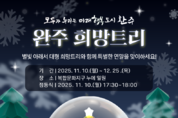 완주군이 연말·연시를 맞아 군민 모두가 함께 즐길 수 있는 따뜻한 겨울 분위기를 연출한다. 완주문화도시지원센터는 복합문화지구 ‘누에 어울림마당’에 대형 크리스마스 ‘희망 트리’를 설치하고 오는 11월 10일부터 12월 25일까지 46일간 운영한다고 5일 밝혔다. 이번 희망 트리는 감성을 자극하는 컬러 전구와 다양한 오브제 장식, 트리 주변을 비추는 경관조명과 입구 아치, 은하수 포토존 등으로 꾸며져 방문객들에게 특별한 볼거리를 제공한다. 특히 트리 꼭대기에는 ‘완주 희망 트리’라는 문구가 빛을 발하며, 새해를 맞이하는 희망의 메시지를 전한다. 트리 점등식은 오는 11월 10일 오후 5시 30분, 누에 어울림마당에서 열릴 예정이다. 간소한 축하공연과 함께 군민과 관계자들이 함께 불빛을 밝히며 올 한 해를 되돌아보고 새해의 희망을 함께 기원하는 자리가 될 전망이다. 완주문화도시지원센터 관계자는 “희망 트리를 통해 군민들이 따뜻한 연말의 정취를 느끼고, 완주의 겨울이 한층 더 빛나길 바란다”고 말했다. 조준모 완주문화도시지원센터장은 “희망의 불빛이 군민 모두에게 위로와 응원이 되길 바란다”며 “앞으로도 완주 곳곳에 문화의 온기를 전할 수 있는 다양한 프로그램을 이