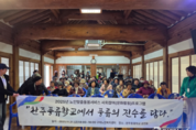 완주군 구이노인복지센터가 최근 완주풍류학교에서 노인맞춤돌봄서비스 이용자 중 사회참여 기회가 적은 어르신 60여 명을 대상으로 국악 공연 관람 행사를 진행했다. 이번 행사는 시조창, 시 낭송, 사물판굿, 장고장단, 성주풀이 춤, 대금 연주, 판소리, 색소폰 연주 등 전통과 대중 예술을 아우르는 다채로운 프로그램으로 구성돼 어르신들의 큰 호응을 얻었다. 또한 창극 <뺑파전>, 부채춤, 대중가요, 춤추는 매직 마술쇼 등이 더해져 공연의 즐거움을 배가시켰다. 공연에 참여한 한 어르신은 “가까이에서 공연을 볼 수 있어 신기하고 설렜다”며 “덩실 춤이 절로 나올 만큼 즐거웠고 초대해 줘서 감사하다”고 소감을 밝혔다. 안정현 구이노인복지센터 센터장은 “어르신들이 공연을 관람하며 즐거워하는 모습을 보니 큰 보람을 느낀다”며 “앞으로도 어르신들이 문화 활동을 통해 활력을 얻고 정서적 안정감을 가질 수 있도록 다양한 프로그램을 운영하겠다”고 말했다. 이어 “공연에 초대해 준 완주풍류학교 김종덕 교장에게도 감사드린다”고 덧붙였다. 한편 완주군은 돌봄 취약 어르신들을 대상으로 노인맞춤돌봄서비스를 제공하며, 안정적인 노후생활 보장과 신체·정신적 기능 유지를 위한 지원을