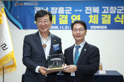전북특별자치도 고창군과 전남 장흥군이 21일 장흥군에서 자매결연 협약을 맺고 양 지역의 상생 발전을 위한 협력 관계를 공식화했다. 행사에는 심덕섭 고창군수, 김성 장흥군수 등 양 지자체 관계자 150여 명이 참석했다. 이번 협약은 올해 초 두 지자체가 우호 교류 의사를 교환한 뒤 축제 상호 방문과 실무 논의를 이어오며 협력 필요성이 높아지면서 추진됐다. 행정, 관광, 문화, 농업 등 다양한 분야에서 실질적인 교류 방안이 논의돼 협약 체결로 이어졌다. 협약식은 참석자 소개, 홍보영상 시청, 양 군 단체장 인사말씀, 협약서 서명, 기념 촬영 순으로 진행됐다. 두 군은 앞으로 폭넓은 교류 사업을 추진해 주민 삶의 질 향상과 지역 공동 번영을 실현하는 데 협력하기로 뜻을 모았다. 고창군과 장흥군은 풍부한 자연환경과 관광자원을 보유하고 있을 뿐 아니라, 동학농민혁명 당시 북접·남접의 주요 거점 역할을 담당했던 역사적 공통점도 공유한다. 이러한 배경은 양 지역이 지속 가능한 연대와 상생 협력 구조를 구축하는 데 중요한 기반이 될 것으로 기대된다. 김성 장흥군수는 “고창군과의 자매결연은 자연·문화·역사적으로 이어져 온 두 지역의 공통 기반을 바탕으로 더 깊이 있는 교류를