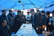 권익현 부안군수가 초고압 송전철탑 백지화를 요구하며 집회를 이어가고 있는 대책위원회를 찾아 면담을 진행했다. 부안군은 권 군수가 지난 13일 군청 앞에서 집회 중인 초고압 송전철탑 백지화 부안군 대책위원회 천막을 방문해 약 1시간 동안 대화를 나눴다고 밝혔다. 이날 면담에는 부안군 관계 공무원들과 대책위 공동위원장, 범군민위원회 관계자, 언론인 등이 참석했다. 면담 초반 일부 현안을 둘러싸고 분위기가 다소 격앙되기도 했으나, 상호 입장을 설명하고 경청하는 과정을 거쳐 대화는 원만히 마무리됐다. 면담에서는 전력망 재편 방안과 지역 에너지 정책 등이 주요 의제로 논의됐다. 부안군과 대책위는 해상풍력 발전 전력의 지역 내 소비 확대와 RE100 산업단지 필요성에 공감대를 형성한 것으로 전해졌다. 권 군수는 대책위가 제안한 전력망 재편 방안에 대해 “제안 내용을 면밀히 검토하고 타당성이 확인되면 공론화 기구를 통해 함께 논의하자”고 밝혔다. 이어 “송전철탑 설치로 인한 군민 피해를 최소화하는 것이 최우선이며, 주민 피해가 예상되는 구간은 지중화를 원칙으로 검토해야 한다”고 강조했다. 장용석 새만금 RE100 국가산단 부안 유치 범군민위원회 공동위원장은 “과거 논쟁보