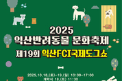 사람과 반려동물이 함께 어우러지는 축제의 장이 익산에서 열린다. 익산시는 오는 18일부터 19일까지 이틀간 모현공원 잔디구장에서 ‘2025 익산 반려동물 문화축제 및 제19회 익산 FCI 국제 도그쇼’를 개최한다고 13일 밝혔다. 이번 축제는 반려동물 친화 문화를 확산하고 지역 반려동물 산업을 육성하기 위해 마련됐으며, 사단법인 한국애견연맹이 주관한다. 특히 세계애견연맹(FCI)이 공인하는 국제 도그쇼와 함께 열려 수준 높은 관람 기회를 제공할 것으로 기대된다. 행사는 18일 오전 11시 개막식을 시작으로 반려동물과 함께 즐길 수 있는 다양한 프로그램과 교육, 캠페인, 체험, 전시·판매 부스 등이 이틀간 운영된다. 주요 프로그램으로는 반려견 달리기 대회, 아마추어 장애물 경주(어질리티), 장기자랑, 독디스크 공연 등 반려동물과 보호자가 함께 참여하는 체험형 이벤트가 펼쳐진다. 또한 도그 스포츠 훈련 시범, 펫티켓 강의, 반려동물 문제행동 상담과 건강검진, 유기동물 입양 캠페인 등 반려동물 문화 개선을 위한 프로그램도 마련됐다. 현장에서는 애견미용 체험, 반려견 모양 달고나 만들기, 방향제 제작, 인식표 만들기 등 가족 단위 체험 부스가 운영되며, 사료·간식·