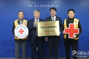 전주시가 적십자 회비 모금에 동참하며 기부문화 확산과 이웃사랑 실천에 나섰다. 전주시는 8일 전주시장실에서 대한적십자사 전북특별자치도지사에 2026년도 적십자 특별회비를 전달했다고 밝혔다. 전달식에는 우범기 전주시장과 김홍식 대한적십자사 전북특별자치도지사 회장을 비롯한 양 기관 관계자들이 참석했다. 이날 김홍식 회장은 전주시에 특별회원증을 전달하며 감사의 뜻을 전했다. 전주시가 기탁한 특별회비를 포함한 모금액은 재해 발생 시 이재민 구호를 비롯해 저소득층 지원, 사회봉사 활동 등 다양한 인도주의 사업에 사용될 예정이다. 김홍식 회장은 “전주시의 따뜻한 관심과 지원이 위기 상황에 놓인 이웃들에게 큰 힘이 되고 있다”며 “앞으로도 도움이 필요한 곳에 신속하게 손길을 전할 수 있도록 지속적인 관심을 부탁드린다”고 말했다. 우범기 전주시장은 “적십자 특별회비는 단순한 기부를 넘어 어려운 이웃에게 희망과 용기를 전하는 소중한 재원”이라며 “전주시도 나눔 문화가 더욱 확산될 수 있도록 함께 노력해 모두가 더불어 사는 따뜻한 도시를 만들어가겠다”고 밝혔다. 더펜뉴스 최은화 기자 저작권자 ⓒ 더펜뉴스 인터넷신문 무단전재 및 재배포 금지