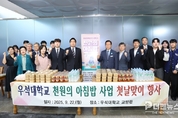 완주군이 지역 농산물과 연계한 아침식사 지원을 통해 청년 세대의 건강한 하루를 책임진다. 완주군은 22일 우석대학교 교양관 식당에서 ‘천 원의 아침밥’ 하반기 사업 첫날을 맞아 기념행사를 열고, 본격적인 운영에 돌입했다. 이날 행사에는 유희태 완주군수, 박노준 우석대 총장, 김정은 사회적협동조합 양지뜰 대표 등 관계자들이 함께해 바쁜 대학생활로 아침을 거르기 쉬운 학생들에게 직접 식사를 전달하며 격려의 메시지를 전했다. ‘천 원의 아침밥’ 사업은 대학생들에게 단돈 1천 원에 아침식사를 제공하는 복지정책으로, 완주 로컬푸드 식재료를 활용한 건강한 메뉴 구성이 특징이다. 군은 상반기 동안 학생 만족도 조사를 통해 덮밥류를 중심으로 한 메뉴 다양화, 과일·채소 등 영양 균형 강화 등 개선점을 반영했으며, 하반기에는 보다 내실 있는 운영을 위해 현장 의견 청취 및 지속 모니터링 체계를 마련했다. 특히 완주로컬푸드 협동조합이 직매장을 통해 판매되지 않은 신선 농산물을 기부하려는 농가와의 연계를 확대하면서, 지역 농업과 청년 복지가 만나는 지속가능한 상생 모델로 주목받고 있다. 유희태 완주군수는 “천 원의 아침밥은 단순한 한 끼 식사 제공을 넘어, 청년들이 건강하게 하