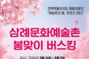완주군 삼례문화예술촌이 봄을 맞아 다채로운 버스킹 공연을 선보이며 관광객 유치에 나섰다. 완주군은 오는 5월 9일까지 매주 토요일 ‘2026년 명품관광지 봄맞이 버스킹’을 개최한다고 밝혔다. 이번 공연은 지난 14일 삼례농악단의 오프닝 무대를 시작으로 본격 운영에 들어갔으며, 매주 토요일 오후 1시부터 4시까지 삼례문화예술촌 야외마당에서 진행된다. 공연은 장구와 통기타, 난타 등 대중적인 장르부터 칼림바와 만돌린, 오카리나 등 이색 악기 연주까지 다양한 무대로 구성돼 관람객들에게 색다른 문화 경험을 제공할 예정이다. 현장에서는 공연과 함께 풍선아트 체험 프로그램인 ‘풍선놀이터’가 상시 운영돼 가족 단위 방문객들에게 즐길 거리를 더한다. 특히 이번 버스킹은 완주군 생활문화예술동호회 등 지역 예술인들이 참여해 주민과 행정이 함께 만드는 자발적 문화 생태계를 형성한다는 점에서 의미가 크다. 또한 삼례문화예술촌의 공간을 활용한 공연을 통해 방문객 체류 시간을 늘리고 지역경제 활성화에도 기여할 것으로 기대된다. 완주군은 이번 프로그램을 통해 문화 향유 기회를 확대하는 동시에 지역 예술인의 활동 기반을 넓히는 효과를 동시에 거둘 것으로 보고 있다. 서진순 문화역사과장은