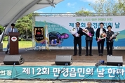 김제시 만경읍이 지난 13일 만경능제그린공원에서 ‘제12회 만경읍민의 날’을 맞아 700여 명의 주민과 출향 인사들이 함께한 가운데 성대한 한마당 잔치를 열었다. 이번 행사는 만경읍발전추진위원회(위원장 소성영) 주관으로 열렸으며, 코로나19 이후 오랜만에 대규모로 열린 읍민 화합행사라는 점에서 지역 내외의 큰 관심을 받았다. 세대를 아우르는 다양한 주민자치 프로그램과 화합의 무대, 의미 있는 시상까지 다채로운 구성으로 진행돼 주민들의 큰 호응을 얻었다. 행사는 고고장구, 댄스스포츠, 라인댄스, 색소폰 연주 등 만경읍 주민자치센터에서 운영 중인 문화예술 프로그램의 공연으로 서막을 열었고, 지역 농민들로 구성된 굿만경 농부합창단이 흥겨운 식전 무대를 이어받았다. 이날 개회식에서는 지역사회에 헌신한 주민에게 수여하는 ‘읍민의 장’ 시상식이 함께 열렸다. 장수장에는 103세의 박일주 어르신이, 봉사장에는 만경읍 노인일자리 참여자 단체와 함께 김동배(71), 박익찬(52) 씨가 각각 수상의 영예를 안았다. 효열장에는 시부모를 극진히 모시며 경로효친 사상을 실천한 강희경(59) 씨가 선정됐다. 이어진 읍민 노래자랑에서는 세대를 불문한 다양한 참가자들이 무대에 올라 끼와