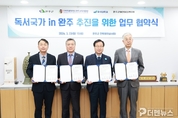 완주군이 공공도서관과 학교, 대학, 어린이집을 잇는 협력체계를 꾸려 지역형 독서생태계 조성에 나섰다. 국회 교육위원회의 ‘독서국가’ 추진 흐름에 맞춰 지역 단위에서 생애주기별 독서교육 기반을 선제적으로 마련하겠다는 구상이다. 완주군은 23일 군청 전략회의실에서 완주교육지원청, 우석대학교, 완주군어린이집연합회와 함께 ‘독서국가 in 완주 협의체’ 업무협약을 체결했다고 밝혔다. 협약식에는 유희태 완주군수와 조영민 완주교육지원청 교육장, 이홍기 우석대 산학협력부총장, 이희봉 완주군어린이집연합회 회장 등이 참석했다. 이번 협약은 독서를 개인 취향의 영역에 머물지 않고 교육과 돌봄, 지역문화 전반을 잇는 공적 기반으로 확장하려는 움직임으로 읽힌다. 지난 1월 국회에서 ‘독서국가’ 선포와 추진위원회 출범이 이뤄진 뒤 생애주기별 독서교육이 국가 과제로 제시되자, 완주군도 지역 실정에 맞는 정책 설계에 착수한 것이다. 협약에 따라 완주군은 공공도서관을 거점으로 독서정책을 총괄하고 협의체 운영 등 행정 지원을 맡는다. 완주교육지원청은 학교 독서프로그램과 독서중점학교 운영을 지원하고, 우석대는 교육특구 사업과 연계한 독서교육 프로그램, 인공지능(AI) 기반 독서 프로그램 개발