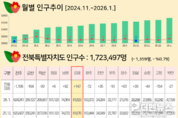 김제시가 새해 첫 달부터 뚜렷한 인구 증가세를 보이며 전북 지역 시·군 가운데 가장 많은 인구 증가를 기록했다. 행정안전부 주민등록 인구통계에 따르면 2026년 1월 말 기준 김제시 주민등록인구는 8만1823명으로, 전월보다 147명 증가했다. 같은 기간 자연감소가 74명 발생했음에도 불구하고, 사회적 순유입 인구가 221명에 달하며 전체 인구 증가를 견인했다. 연령대별로 보면 미래 세대 유입이 두드러졌다. 영유아(0~6세)는 23명, 청년층(18~39세)은 48명이 늘어나 인구 규모 확대와 함께 인구 구조의 질적 개선도 함께 이뤄졌다는 평가다. 이 같은 흐름은 김제시가 추진해 온 생애주기별 맞춤형 인구 정책의 효과로 분석된다. 전입장려금과 취업청년 정착수당, 청년부부 주택수당, 결혼축하금 등 정주 여건을 강화하는 정책이 실질적인 유입으로 이어졌다는 것이다. 시는 지난해 말 출산장려금 지원 요건을 기존 ‘부모 모두 거주’에서 ‘부 또는 모 거주’로 완화하는 등 제도 개선을 통해 인구 이탈을 줄이고 유입을 확대해 왔다. 김제시는 이러한 성과를 바탕으로 올해 ‘김제형 일주일 살기’ 등 체류형 정책을 본격 추진해 방문객이 정주 인구로 이어지는 선순환 구조를 구축한