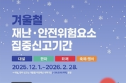 군산시가 겨울철 대비 안전관리 강화에 나섰다. 군산시는 4일 오는 12월부터 내년 2월까지 ‘겨울철 재난·안전 위험요소 집중신고 기간’을 운영한다고 밝혔다. 대설·한파·화재·축제‧행사 등 겨울철 발생 위험이 높은 4개 분야를 중심으로 시민이 직접 위험요인을 신고하는 시민참여형 감시 체계를 가동한다. 대설 분야에서는 도로 제설 미흡과 제설함 관리 불량, 시설물 붕괴 위험 등 현장 점검이 필요한 사안을 신고할 수 있다. 한파 관련 신고는 인도 결빙, 고드름 낙하 위험, 한파 쉼터 이용 불편 등이 대상이다. 화재 취약 요소로는 비상구 적치물, 소방시설 불량, 불법 취사·소각 등이 포함됐다. 축제·행사 분야에서는 행사장 시설 파손, 인파 밀집 우려 등 안전사고로 이어질 위험을 중점적으로 점검한다. 신고는 ‘안전신문고’ 앱 또는 누리집을 통해 가능하며, ‘겨울철 집중신고’를 선택하거나 앱 내 퀵 메뉴 기능으로 간편하게 접수할 수 있다. 신고 처리 결과는 문자 등으로 안내된다. 군산시 관계자는 “시민들의 적극적인 참여는 안전한 도시를 만드는 데 큰 힘이 된다”며 “접수된 신고는 신속히 조치하고 그 결과도 투명하게 안내하겠다”고 말했다. 시는 특히 사고 예방에 기여한 우