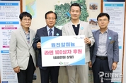전북 완주군은 ㈜원진알미늄(대표 원태연)이 지역 저소득 가구와 복지 사각지대를 위해 라면 100상자(환가액 400만 원 상당)를 기탁했다고 10일 밝혔다. 원태연 대표는 군수실을 방문해 후원품을 전달하며 “작은 정성이지만 어려운 이웃들에게 따뜻한 명절이 되길 바란다”고 말했다. ㈜원진알미늄은 지난 설 명절에도 동일한 규모의 라면을 후원하는 등 꾸준히 나눔 활동을 이어오고 있다. 군은 기탁받은 물품을 읍·면을 통해 지역 내 저소득 가구와 복지 사각지대에 전달했다. 원 대표는 “지역사회와 함께 나누는 것이 기업의 중요한 역할이라고 생각한다”며 “앞으로도 작은 정성이지만 꾸준한 나눔을 통해 이웃들에게 힘이 될 수 있도록 하겠다”고 말했다. 유희태 완주군수는 “㈜원진알미늄이 보여주신 따뜻한 나눔이 어려운 이웃들에게 큰 힘이 되고 있다”며 “전달된 성품이 필요한 곳에 잘 전달되도록 최선을 다하겠다”고 감사의 뜻을 전했다. 더펜뉴스 최은화 기자 저작권자 ⓒ 더펜뉴스 인터넷신문 무단전재 및 재배포 금지