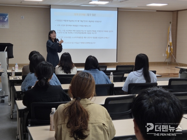 온정덕 교수는 강의를 통해 개념 중심의 수업 설계 원리를 소개하고, 학생들의 비판적 사고력과 문제해결력을 향상시키는 교수학습 전략을 구체적으로 제시했다. 교사들은 질의응답을 통해 탐구 중심 수업의 실제 적용 방안을 논의하며 활발히 소통했다.