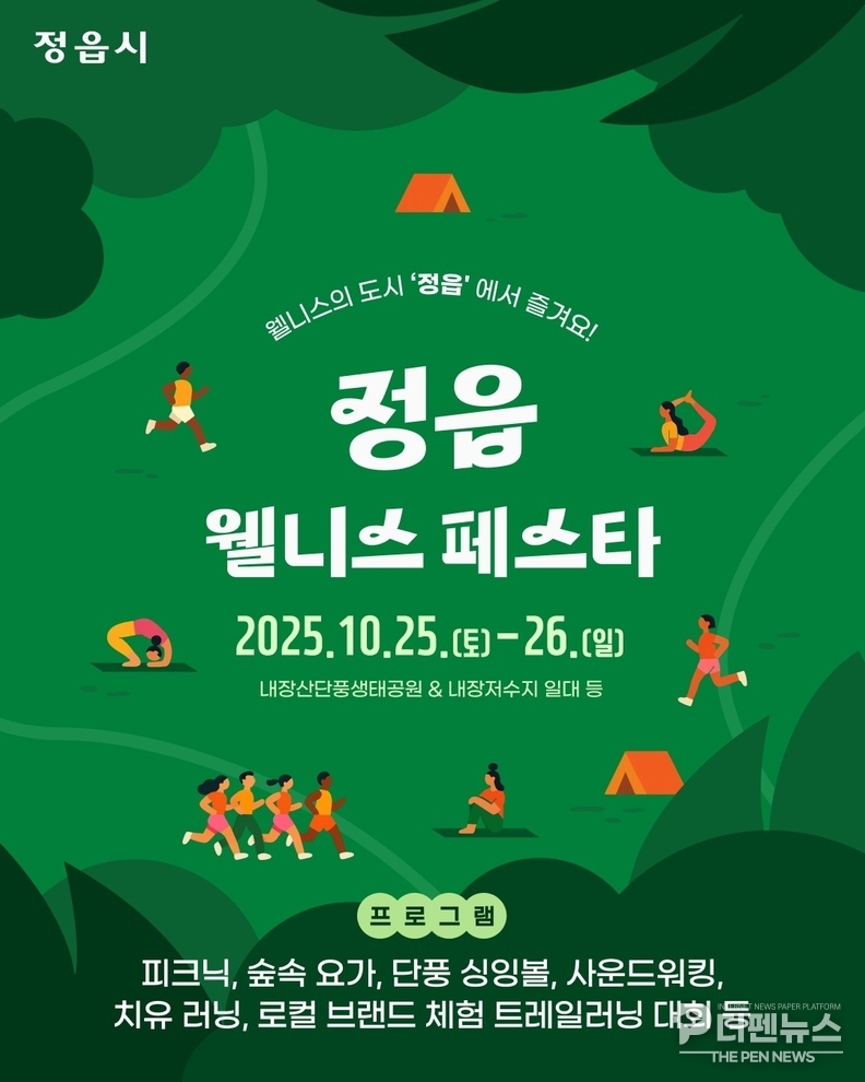 정읍시는 오는 25일부터 26일까지 이틀간 내장산관광특구 일원에서 ‘내장산 웰니스페스타’를 열고, 기존의 단풍 관광을 넘어 자연 속에서 머물며 치유하는 체류형 관광의 첫발을 내딛는다.