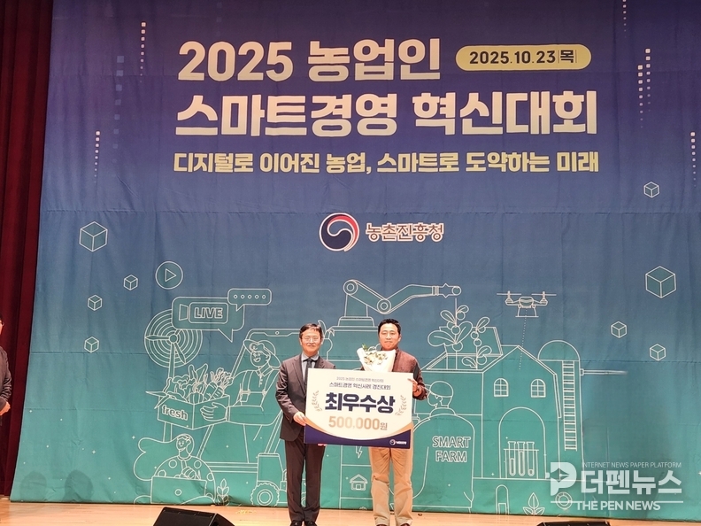 정읍시는 지난 23일 농촌진흥청이 주관한 ‘2025 농업인 스마트경영 혁신대회’에서 정우면 따옴농장 황종운 대표가 스마트경영 혁신 사례 부문 최우수상을 수상했다고 24일 밝혔다.