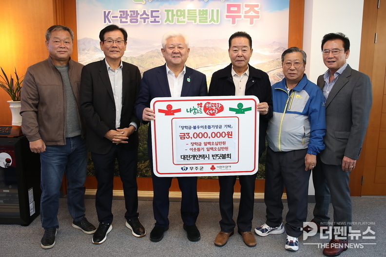 반딧불회 회원들은 지난 29일 무주군청을 방문해 장학금 150만 원과 이웃돕기 성금 150만 원 등 총 300만 원을 기탁했다.