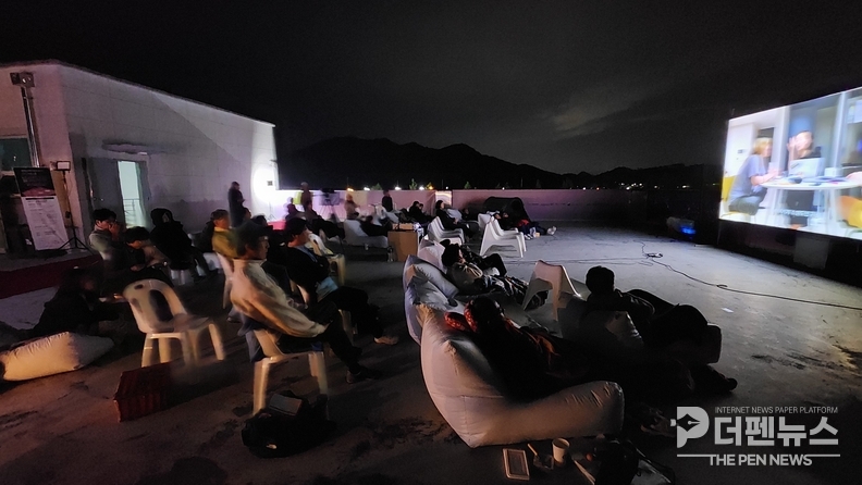 밤 12시 이전에는 옥상 상영, 이후에는 실내 상영관 프로그램이 이어지며, 중간에는 지역 뮤지션 공연과 컵라면을 곁들인 ‘야식 디너쇼’가 열려 관객에게 색다른 재미를 선사한다.