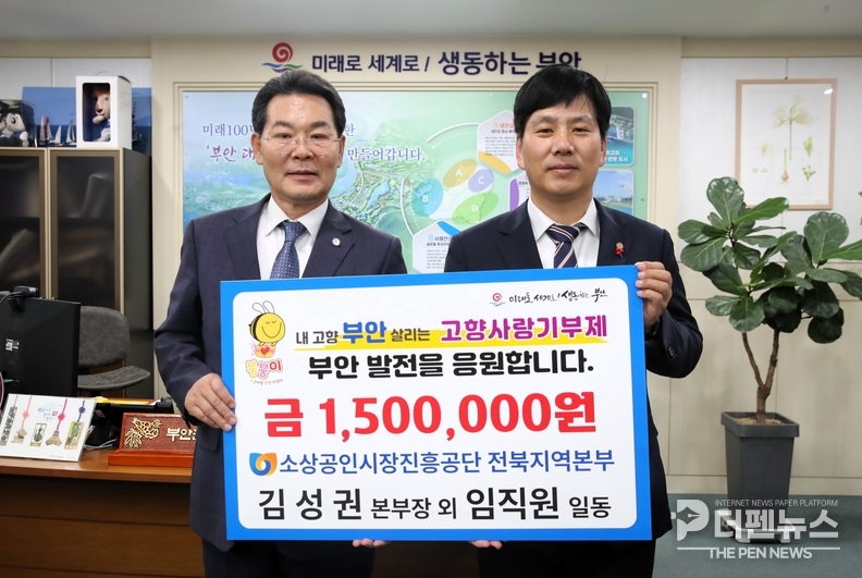 부안군은 최근 소상공인시장진흥공단 전북지역본부 임직원들이 고향사랑기부금 150만원을 기탁했다고 밝혔다.