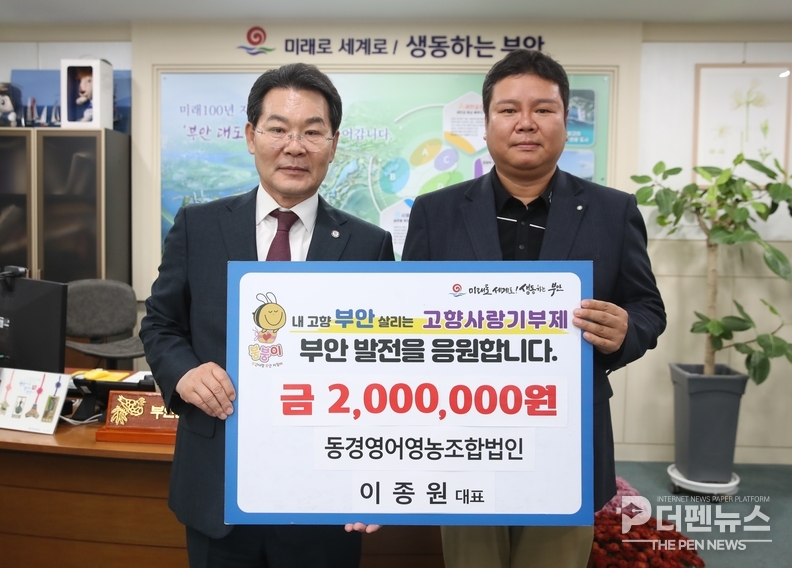 부안군은 7일 동경영어영농조합법인 이종원 대표가 고향사랑기부금 200만 원을 기탁했다고 밝혔다.