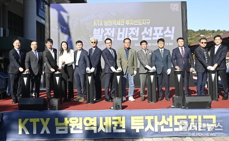 남원시가 KTX 남원역세권을 미래 성장 거점도시로 조성하기 위한 본격적인 행보에 나섰다. 10일 남원역 광장에서 열린 ‘KTX 남원역세권 투자선도지구 발전 비전 선포식’에는 투자기업, 남원시와 남원시의회 관계자, 유관기관, 시민 등 약 200여 명이 참석했다.