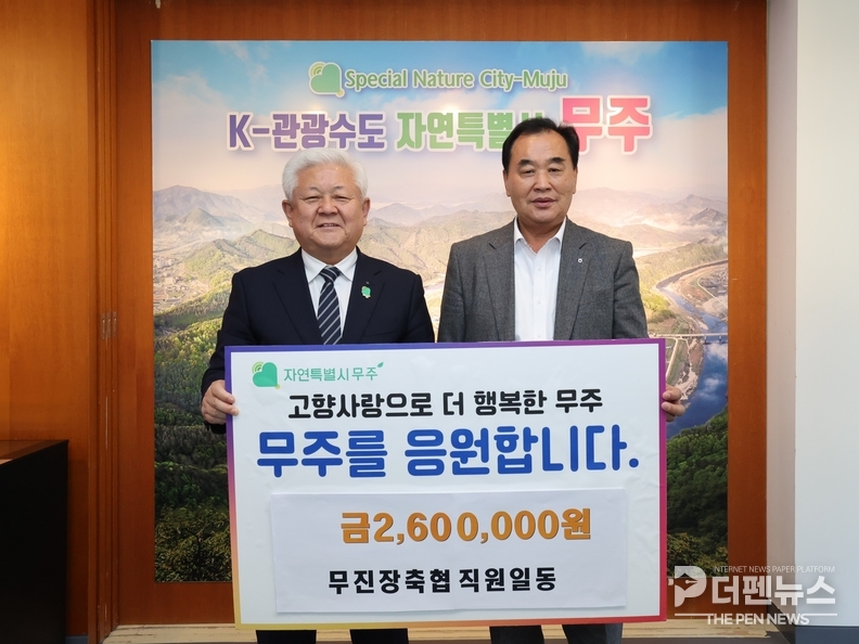 무진장축협 임직원들이 무주군에 고향사랑기부금 260만 원을 기탁하며 3년 연속 기부에 동참했다. 이번 기탁으로 2023년 340만 원, 2024년 240만 원을 포함해 총 840만 원의 고향사랑기부금이 무주군에 전달됐다.