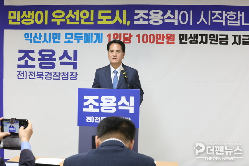 전북경찰청장을 지낸 조용식 익산시장 출마예정자가 내년 지방선거를 앞두고 ‘전 시민 1인당 100만 원 민생지원금 지급’을 핵심 공약으로 내세우며 첫 행보에 나섰다. 그는 이 정책이 이재명 정부가 추진한 기본소득형 민생정책의 연장선상에 있다고 강조했다.