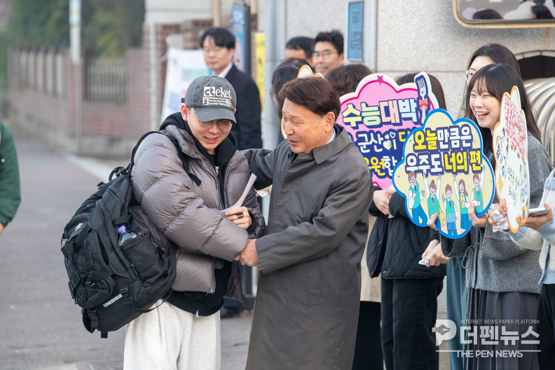 강임준 군산시장이 13일 2026학년도 대학수학능력시험이 치러진 관내 시험장을 찾아 수험생들에게 따뜻한 격려와 응원을 전했다.