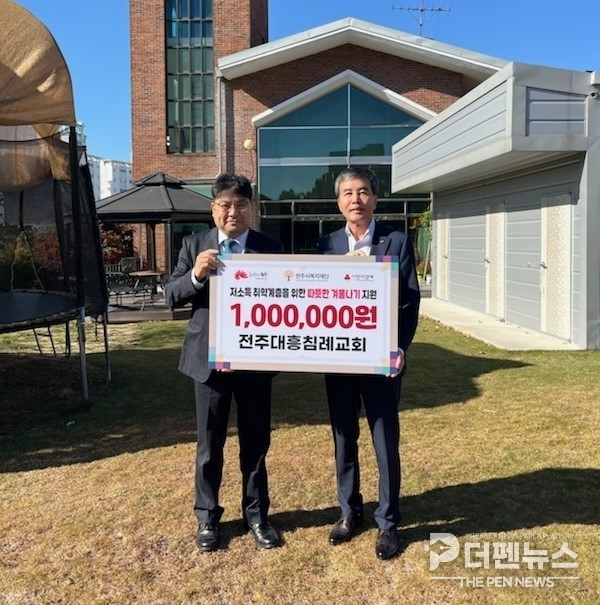 전주대흥침례교회(담임목사 김규태)가 추운 겨울을 앞둔 취약계층의 따뜻한 겨울나기를 위해 성금 100만 원을 전주시복지재단(이사장 윤방섭)에 전달했다. 14일 진행된 이번 기부는 지역 저소득층과 독거어르신 등 어려운 이웃들을 돕는 데 사용될 예정이다.