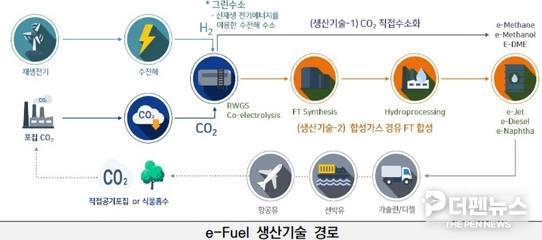 항공 부문의 탈탄소화를 위한 세계 각국의 지속가능항공유(SAF) 혼합 의무화 확대도 기술개발 필요성을 더욱 키우고 있다. SAF는 △폐식용유(UCO) △목질계 바이오매스 △이산화탄소·그린수소 기반 e-Fuel 등으로 구분되는데, 이 중 e-Fuel은 재생에너지 전력을 활용해 생산되기 때문에 온실가스 감축효과가 가장 높은 탄소중립형 연료로 평가된다.