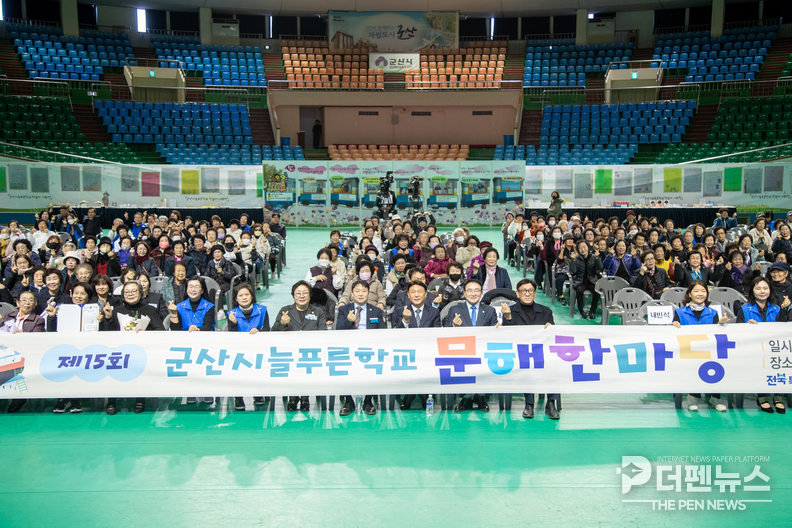군산시가 18일 군산월명실내체육관에서 ‘제15회 군산시늘푸른학교 문해한마당’을 열고 성인 학습자들의 배움의 여정을 축하하는 자리를 마련했다.