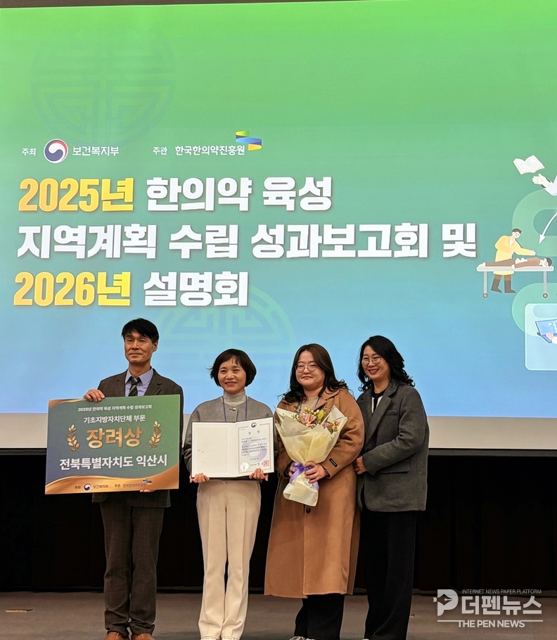 시는 18일 열린 ‘2025년 한의약 육성 지역계획 우수사례 성과보고회’에서 보건복지부 장관상을 수상했다고 밝혔다. 이번 수상은 지난 9월 ‘한의난임사업 성과대회’ 대상과 ‘한의약 건강증진사업 성과대회’ 장려상에 이어 달성한 세 번째 성과로, 익산시가 한의약 공공보건 분야에서 뛰어난 성과를 거두고 있음을 입증했다.