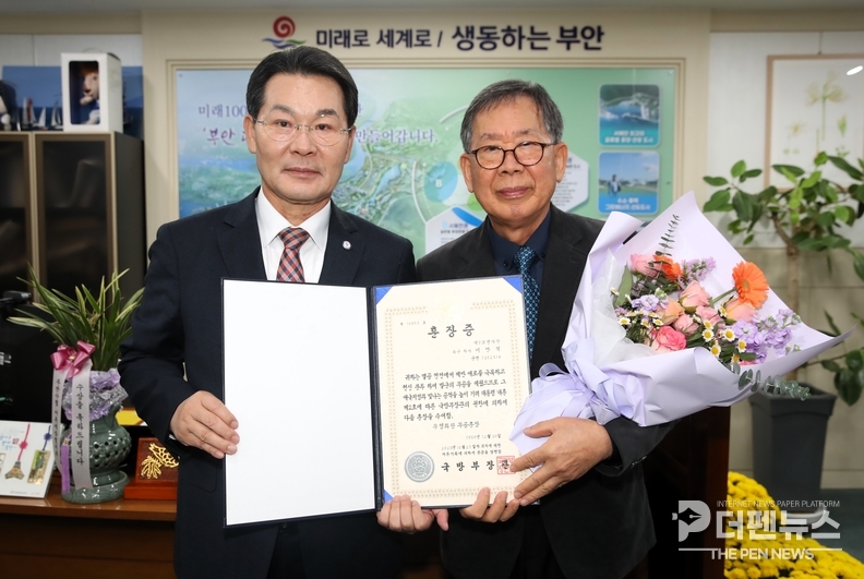 부안군은 18일 군청 군수실에서 6·25전쟁 참전유공자 고 이만석 대위의 자녀 이해홍(71) 씨에게 화랑무공훈장을 전달했다. 이번 전수는 국방부와 육군이 지방자치단체와 협력해 2019년부터 추진 중인 ‘6·25전쟁 무공훈장 찾아주기 사업’의 일환이다.