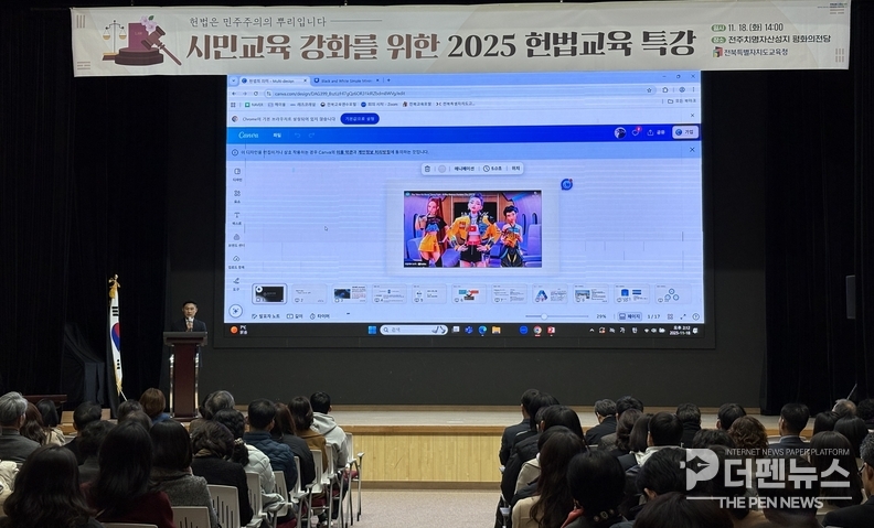 전북교육청은 18일 오후 2시 전주 치명자산성지 평화의전당에서 ‘2025년 교원 대상 헌법교육 특강’을 개최했다고 밝혔다.