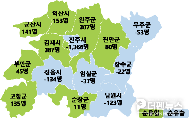 통계에 따르면 김제시는 3분기 387명의 순유입을 기록해 도내에서 가장 큰 증가폭을 보였으며, 1분기 814명, 2분기 440명에 이어 3분기까지 누적 1,641명이 김제로 전입한 것으로 집계됐다.