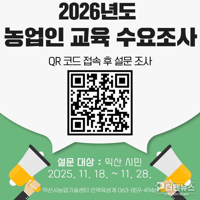 조사 참여는 익산시농업기술센터 누리집에 게시된 QR코드를 통해 간편하게 온라인으로 가능하다. 시는 조사 결과를 바탕으로 농업인대학은 실수요자 중심의 과정으로 재편하고, 품목교육은 신품목 발굴과 기존 작목 심화 등 2026년도 교육 방향을 구체화할 예정이다.