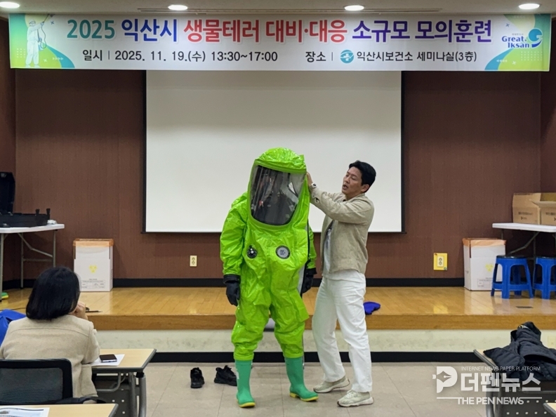 익산시는 19일 보건소에서 생물테러 대비·대응 소규모 모의훈련을 실시하며 실제 대응 역량을 점검했다.