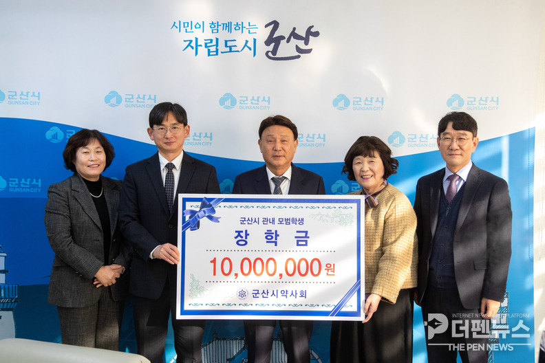 군산시 약사회(회장 강종대)가 경제적 어려움 속에서도 성실히 학업에 임하는 모범 학생들을 위해 장학금 1,000만 원을 군산시에 기탁했다.