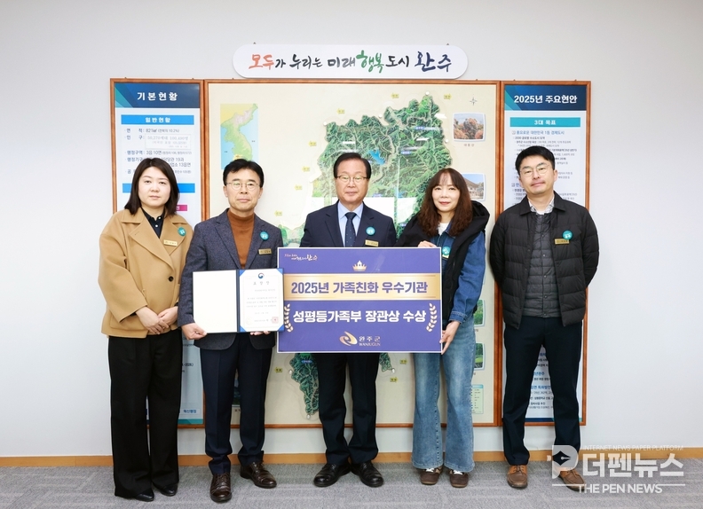 이번 수상으로 완주군의 가족친화정책은 ‘2025년 가족친화 우수사례집’에 수록되며, 12월에는 한국건강가정진흥원 홈페이지에도 게재될 예정이다.