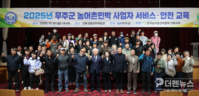 무주군이 농어촌 민박 시설의 안전과 서비스 질 향상에 총력을 기울이고 있다. 무주군은 21일 무주읍 전통생활문화체험관에서 ‘2025년 농어촌 민박 사업자 서비스·안전 집합교육’을 개최, 지역 민박 운영자 1백여 명이 참여했다고 밝혔다.