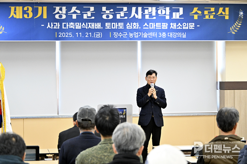 최훈식 군수는 “9개월간 꾸준히 배우고 도전한 교육생들에게 큰 박수를 보낸다”며 “장수군은 앞으로도 전문 농업 인력 양성을 위해 실무형 교육을 지속 확대하고, 미래 농업 경쟁력 강화에 더욱 힘쓰겠다”고 말했다.