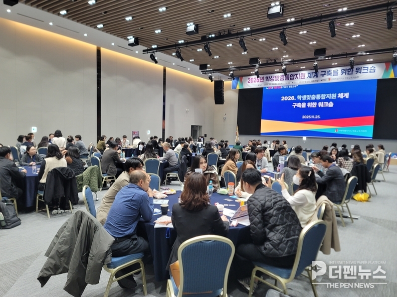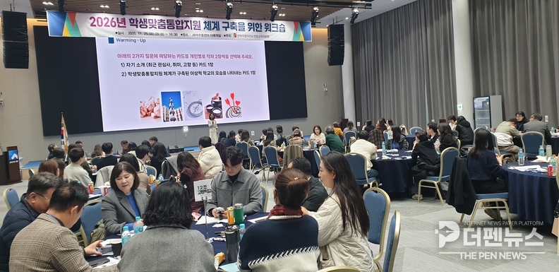 정읍교육지원청(교육장 최용훈)은 2025년 11월 25일 JB아우름 캠퍼스 다목적홀에서 관내 초·중·고·특수학교 교원 100여 명이 참석한 가운데 ‘2026 학생맞춤 통합지원 체계 구축을 위한 워크숍’을 개최했다.