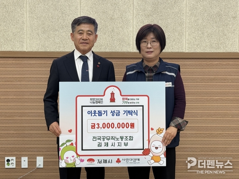 정성주 김제시장은 “어려운 여건 속에서도 따뜻한 마음을 모아주신 조합원분들께 깊이 감사드린다”며 “기탁된 성금은 도움이 꼭 필요한 이웃들에게 투명하게 전달하겠다”고 밝혔다.