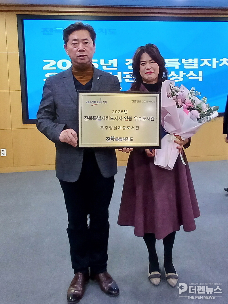 무주형설지공도서관이 ‘2025년 전북특별자치도 공공도서관 운영 평가’에서 우수도서관으로 선정됐다. 무주군은 지난 5일 전북특별자치도로부터 우수도서관 인증 현판을 전달받았으며, 재정 인센티브 400만 원을 지원받게 됐다고 8일 밝혔다.