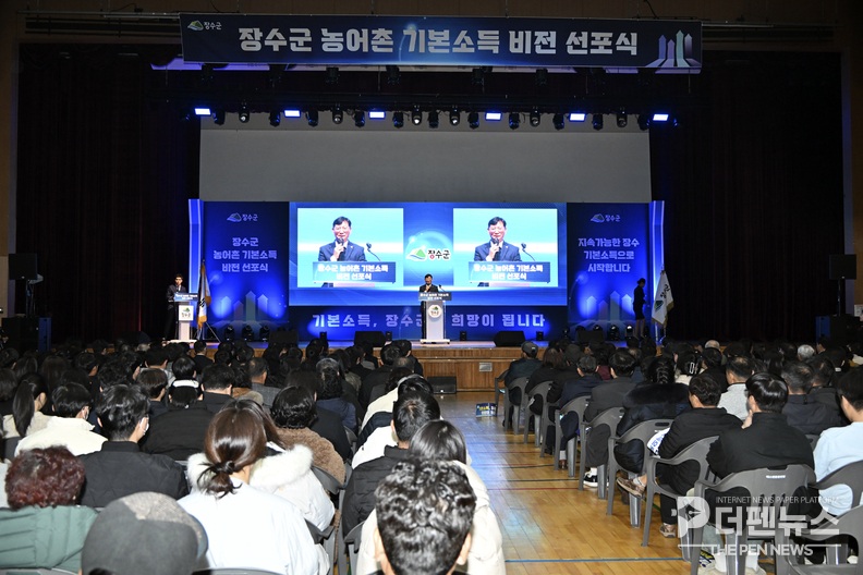 장수군은 8일 한누리전당 산디관에서 ‘농어촌 기본소득 비전 선포식’을 열고 전 군민 기본소득 실현을 향한 본격적인 추진 의지를 밝혔다고 9일 전했다.