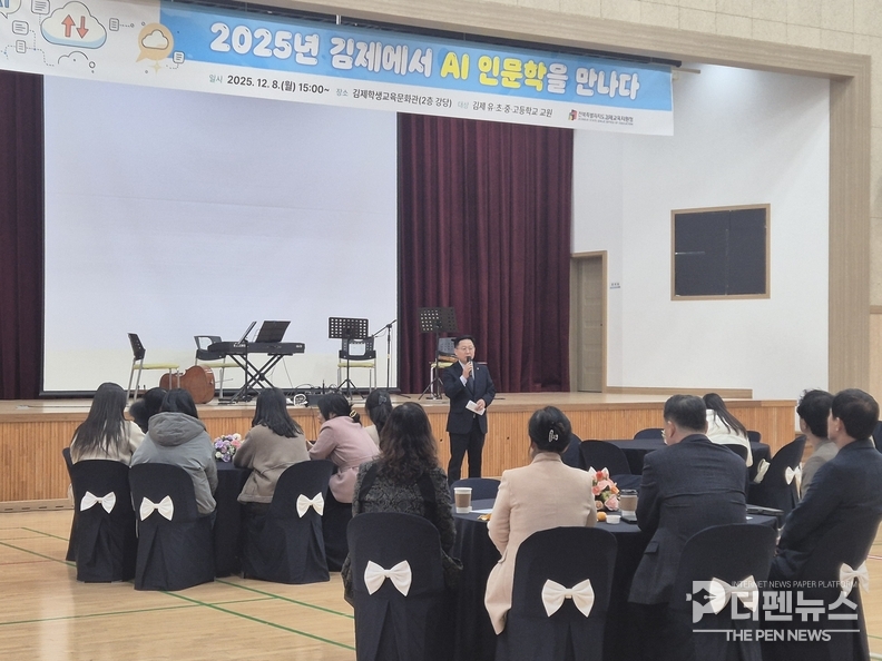 전북특별자치도김제교육지원청(교육장 김윤범)은 12월 8일(월) 오후 3시, 김제학생교육문화관 2층 강당에서 ‘김제에서 AI 인문학을 만나다’ 행사를 개최했습니다.