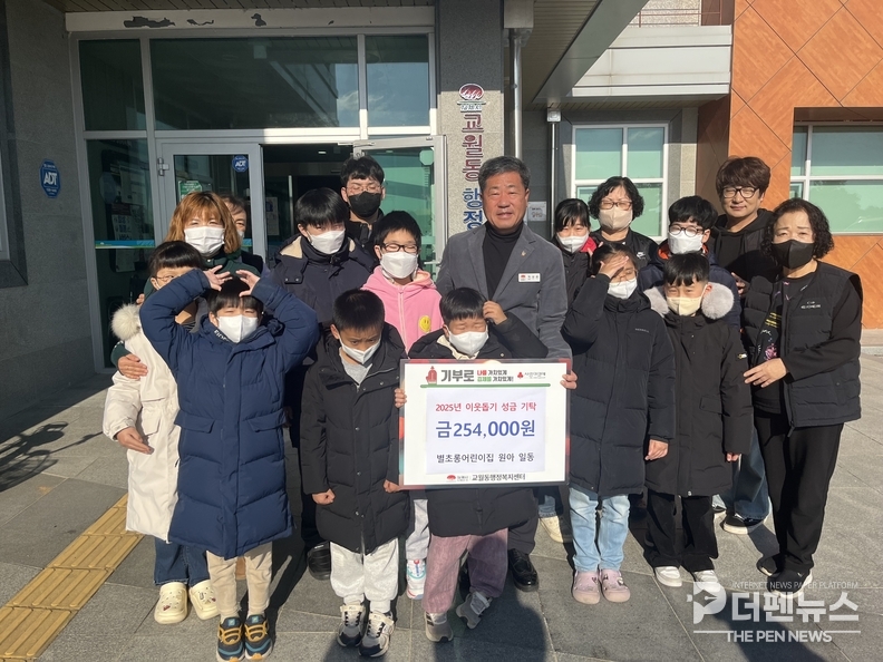 박상윤 교월동장은 “고사리 같은 손으로 모은 소중한 성금을 전달해 주셔서 감사드린다”며 “아이들의 고운 마음이 도움이 필요한 이웃들에게 온전히 전해질 수 있도록 하겠다”고 밝혔다.
