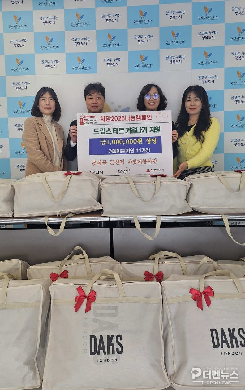 롯데몰 군산점 관계자는 “아이들이 겨울을 조금이라도 따뜻하게 보낼 수 있기를 바라는 마음으로 후원을 준비했다”며 “앞으로도 지역사회와 함께하는 나눔 활동을 지속해 나가겠다”고 말했다.