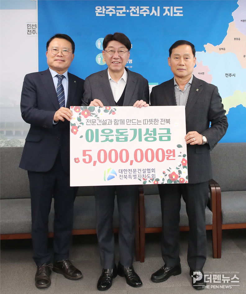 협회는 지역 전문건설업 관련 제도 개선과 전문건설 기술 향상을 위한 사업을 꾸준히 추진하며 지역 건설 경기와 경제 발전에 기여해왔다. 이날 전달된 후원금은 전주시 주거복지센터를 통해 원도심과 도시재생 지역 노후주택 거주 가구의 집수리를 지원하는 데 사용될 예정이다.