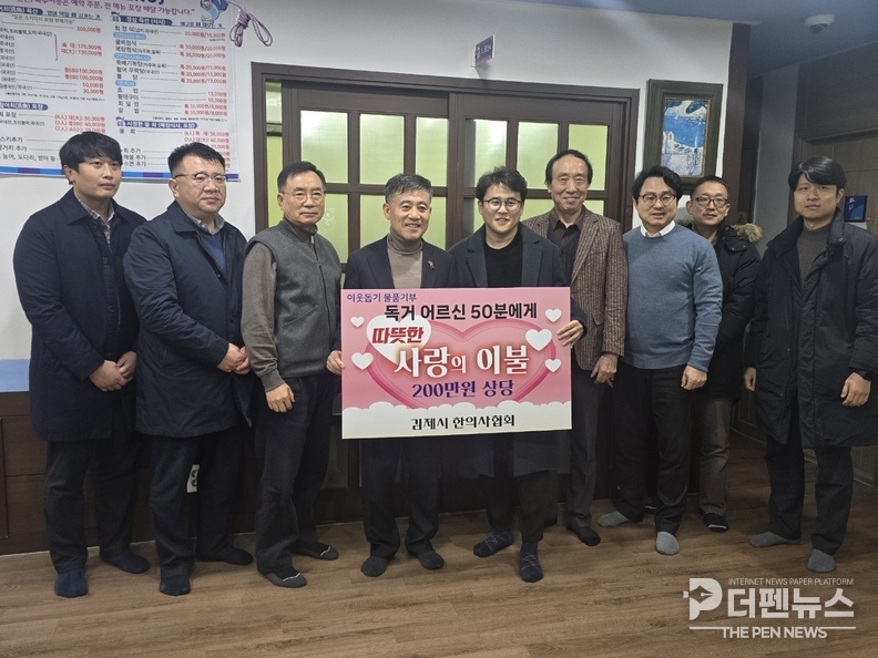나일두 김제시한의사회 회장은 “매년 겨울 어르신들의 생활을 조금이라도 보탬하고자 나눔 활동을 이어오고 있다”며 “앞으로도 지역사회에 실질적인 도움이 되는 지원에 적극 나서겠다”고 말했다.