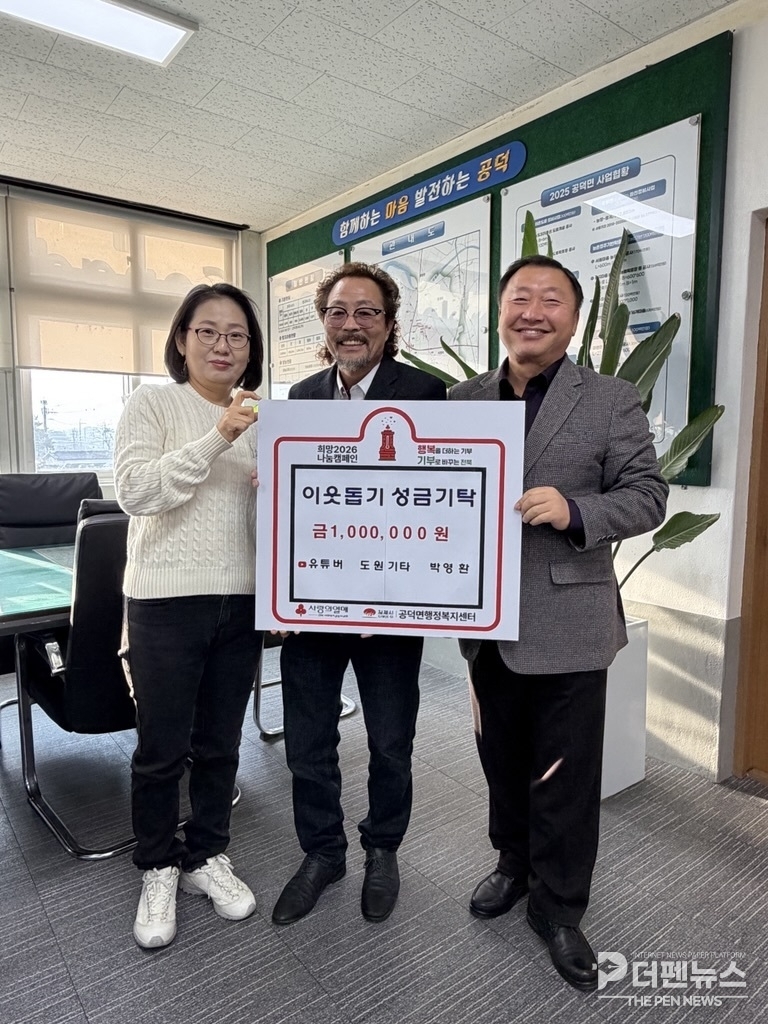 이번 기부는 내년 1월 31일까지 진행되는 범국민 이웃사랑 모금운동 ‘희망2026 나눔캠페인’ 취지에 공감해 이루어진 것으로, 박 씨는 유튜브 활동을 통해 받은 관심과 성원을 지역사회에 되돌려주고자 꾸준히 나눔 활동을 이어오고 있다. 그는 특히 연말·연초 사회적 취약계층의 어려움이 커지는 시기에 실질적인 도움이 되기를 바라는 마음에서 이번 기탁을 결정했다고 설명했다.