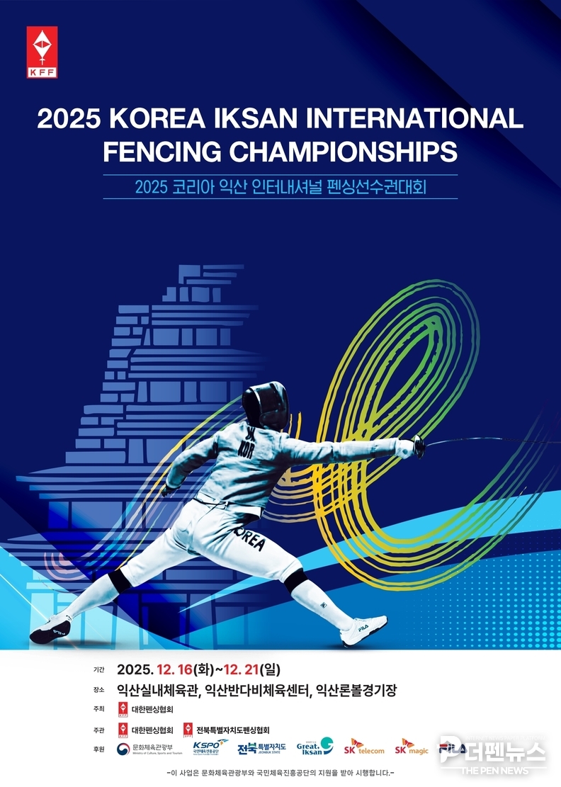 전북 익산이 세계 청소년 펜싱 선수들의 새로운 격전지로 떠오른다. 익산시는 12일, 오는 16~21일 ‘2025 코리아 익산 인터내셔널 펜싱선수권대회’가 익산실내체육관과 반다비 체육센터에서 열린다고 밝혔다. 올해 처음 신설된 국제대회로, 지역 스포츠 경쟁력 강화에 의미 있는 이정표가 될 전망이다.