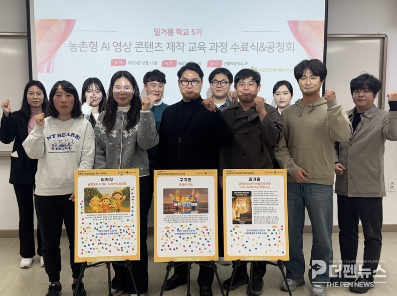부안군이 인공지능(AI)을 활용한 농촌 현장 혁신에 나섰다. 부안군 신활력플러스사업추진단은 최근 신활력공작소에서 3개월간 진행된 농촌형 AI 영상 콘텐츠 제작 교육과정 수료식 및 시상식을 열고, 국내 최초로 시도된 실습형 AI 교육의 성과를 공유했다고 밝혔다.